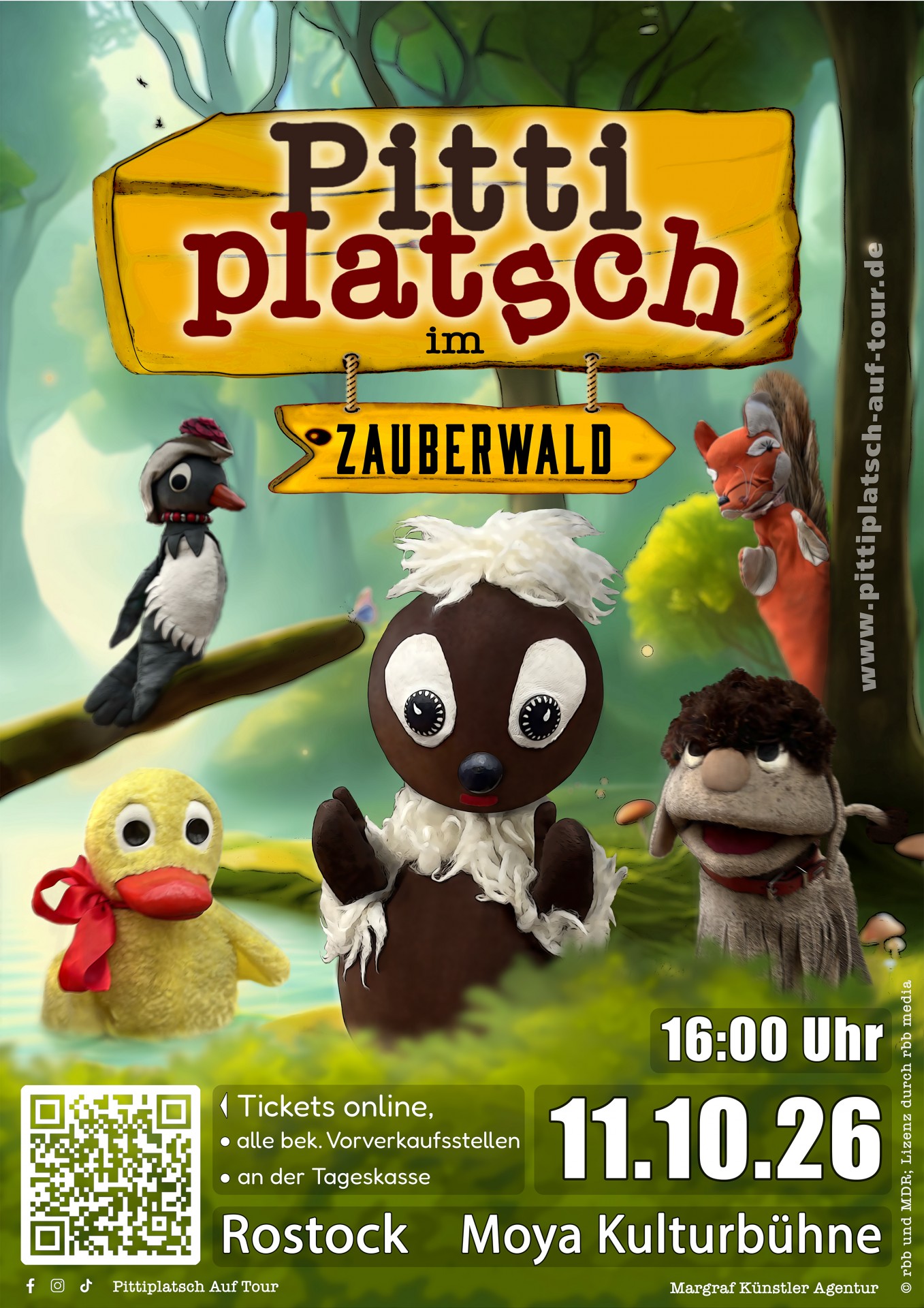 Wenn Pitti loszieht, bleibt kein Ast gerade! Gemeinsam mit seinen Freunden Schnatterinchen, Moppi, Herr Fuchs und Frau Elster begibt er sich auf eine spannende Reise durch den Zauberwald – mit lustigen Überraschungen, Liedern und Tänzen und einer ordentlichen Portion Schabernack!